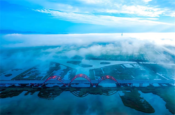 雾锁阅海桥 常青 摄