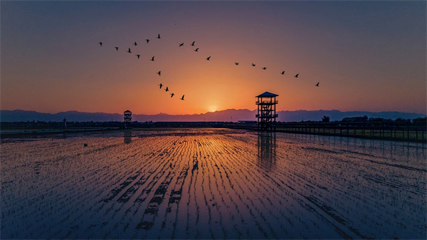 稻渔绕塔山作屏 金波摄