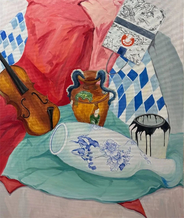 徐佳星 《弦音瓷韵映河声》 100×120cm