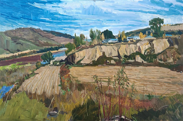 马朝阳 《黄河旁的小镇》 100×120cm 2024年