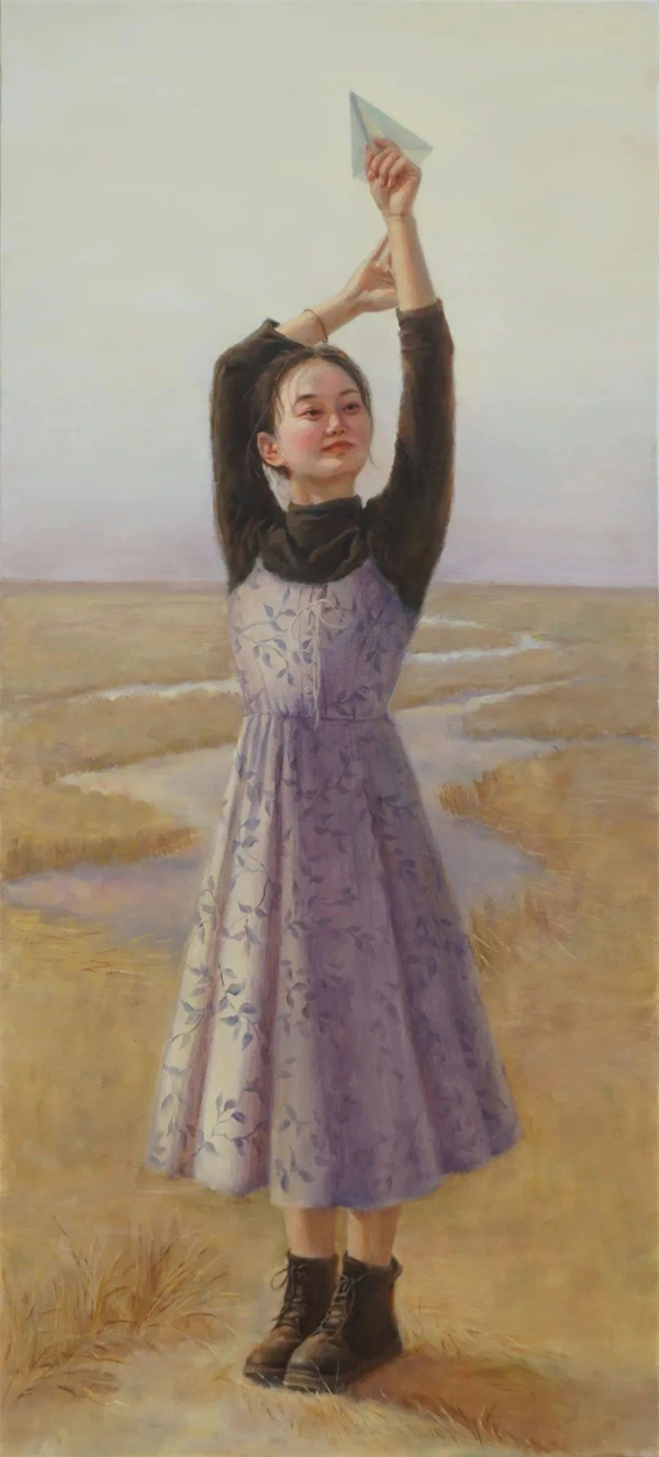 海如婵 《纸飞机的旅程》 160×70cm 2023年