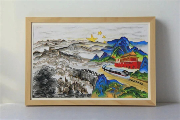 金丝沙画《强国强军》作者:王兵权