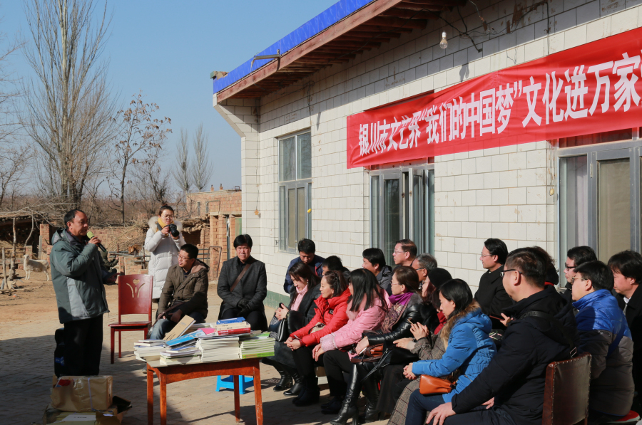银川文艺界“我们的中国梦”文化进万家活动共安排了8项内容,其中“丹青墨香送职工”书画进企业活动、“我们村里的作家”文学创作研讨会、万幅春联进万家活动、百家全家福爱心拍摄活动、“贴窗花 庆丰年”剪纸艺术进万家活动、乡村秦腔票友会和“与时代同行 为人民放歌”乡村慰问演出活动已经陆续完成。