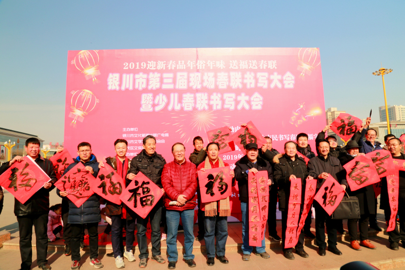 2019年春节元旦期间,银川市文联组建4支文艺小分队,深入到三区两县一市的社区、农村、企业、公共场所,开展了中国年·劳动美新春走基层活动、年味正红——换福焕新名家春联展暨年画民俗展、第三届现场春联书写大赛、“我们的节日”银川市第五届元宵节灯谜展猜活动等共计10场文化进万家活动,送出春联、福字2000副,剪纸作品300幅,图书2000册,为100户家庭拍摄全家福。