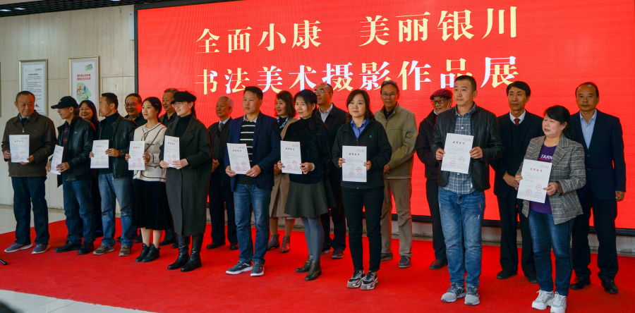 10月12日上午,“全面小康 美丽银川”书法、美术、摄影作品展在银川美术馆开展。