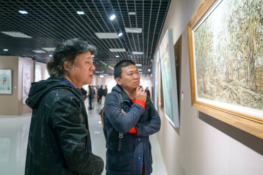 文艺工作者认真观展