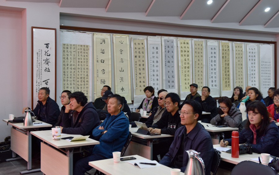 11月30日下午,宁夏书法家协会主席宋琰为学员作了题为《王羲之<圣教序>临摹技法及实践》的专题讲座,并就针对学员的作品一一作了点评,学员们受益匪浅,现场气氛异常热烈。