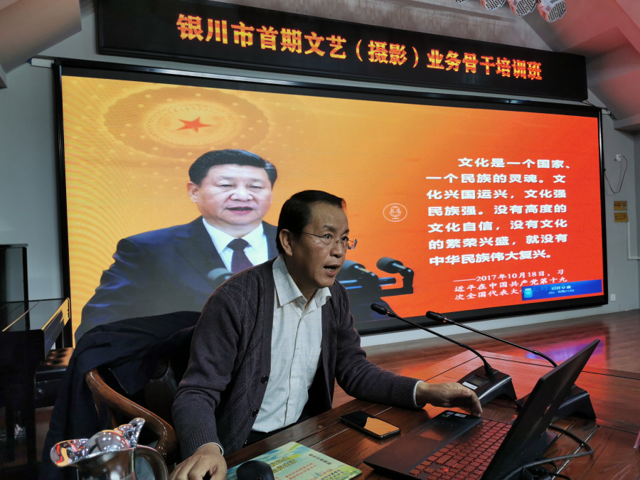 11月24日下午,宁夏大学新闻传播学院教授、银川市摄影家协会副主席邬志斌,著名摄影家刘宪忱分别为摄影班学员作了《漫谈专题摄影的创作与实践》《风光摄影赏析》的专题讲座;宁夏摄影家协会副主席詹安稳、摄影人陆军就自己的作品和大家作了分享,赢得了学员们热烈的掌声。
