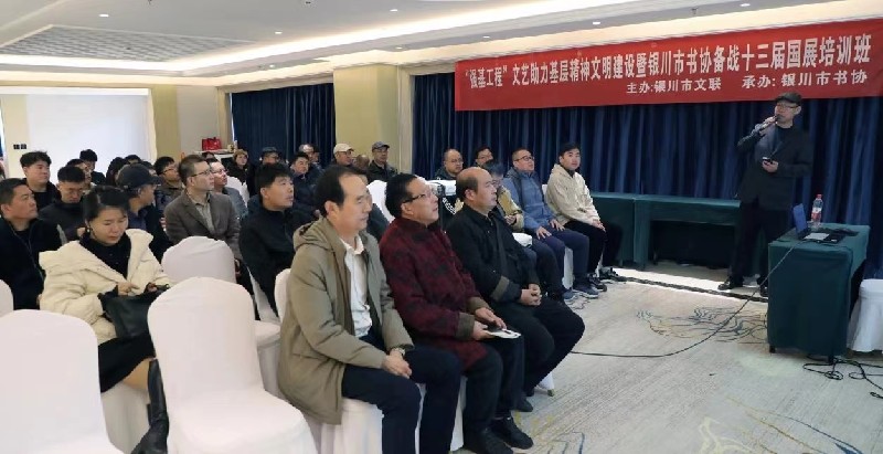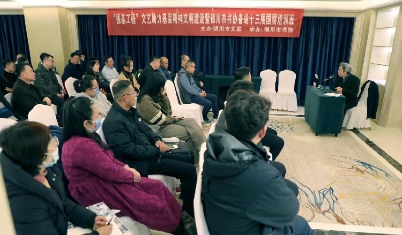 为深入学习贯彻习近平文化思想,落实宁夏书法家协会全国第十三届书法篆刻展览动员会精神,11月13日至17日(不包括11月16日),由银川市文联主办、银川市书法家协会承办的为期四天的全国第十三届书法篆刻展培训班在银川市蓉凤楼大酒店圆满结束。