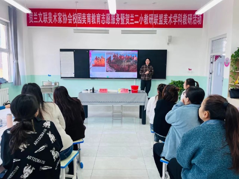 为深入学习宣传贯彻党的二十大精神和习近平总书记对宣传思想文化工作的重要指示精神,弘扬中华优秀传统文化,促进校园美育建设,提升美协会员的艺术修养和审美情趣,培养和发掘美术人才,11月22日,贺兰县文联、贺兰县美术家协会组织美术工作者走进贺兰县第二小学十小校区开展美育志愿服务活动。贺兰县美术家协会主席陈晓莉和贺兰县文联书画院院长夏玉琴为年轻的教师们做了一次精彩授课。