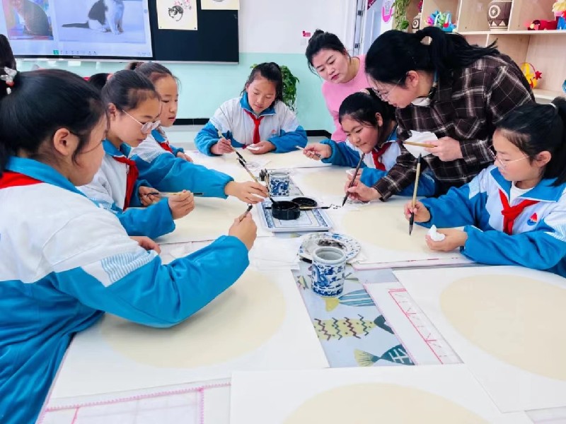 此外,陈晓莉还分别从中国画的学习和创作、中国画的笔墨情趣、中国画的用笔和儿童水墨画创作等方面进行了细致入微的讲解,并进行了现场示范,让老师和学生们近距离感受了美术的无穷魅力。