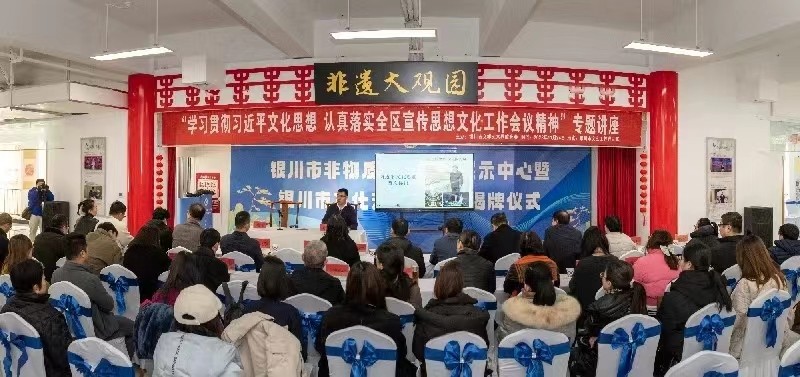 为深入学习宣传贯彻习近平文化思想,认真落实刚刚召开的全区宣传思想文化工作会议精神,进一步统一思想,凝聚共识,踔厉奋发,勇担新时代银川文艺新使命,共同开创银川高质量发展新局面,11月24日上午银川市文联邀请宁夏回族自治区思政骨干教师、宁夏回族自治区青年托举人才、宁夏党校青年教师刘智远在首次启用的银川文艺工作者之家——银川市非物质遗产文化展示中心,围绕“习近平文化思想”做了一场精彩的专题宣讲,银川市文联全体干部职工、市属15个文艺家协会负责人及会员代表、市辖各县(市)区文联负责人共计60余人现场聆听。
