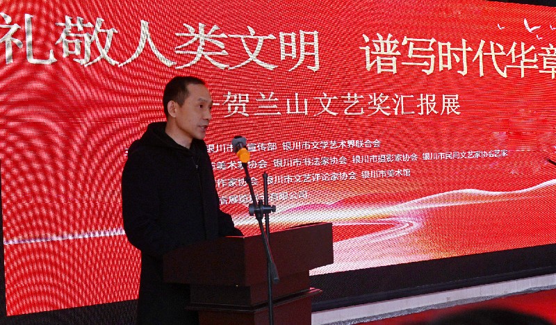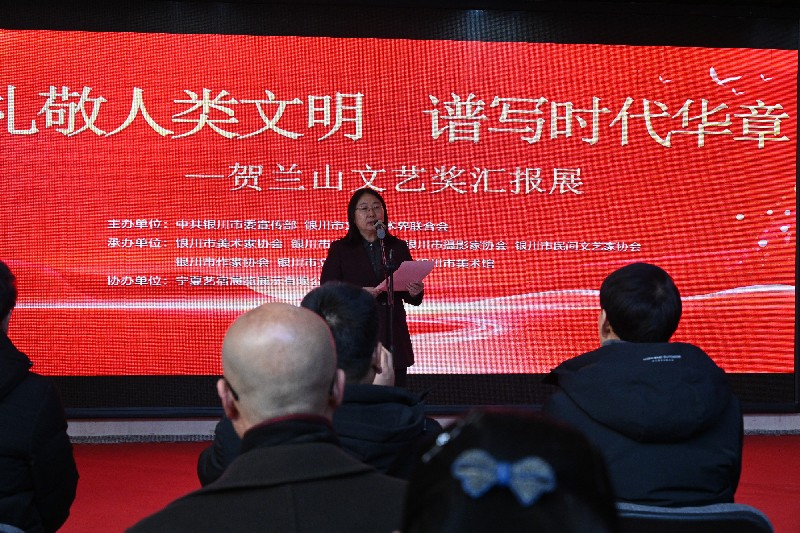 2024年1月10日上午,由中共银川市委宣传部、银川市文学艺术界联合会等单位联合举办“礼敬人类文明 谱写时代华章”——贺兰山文艺奖汇报展在银川美术馆开幕。