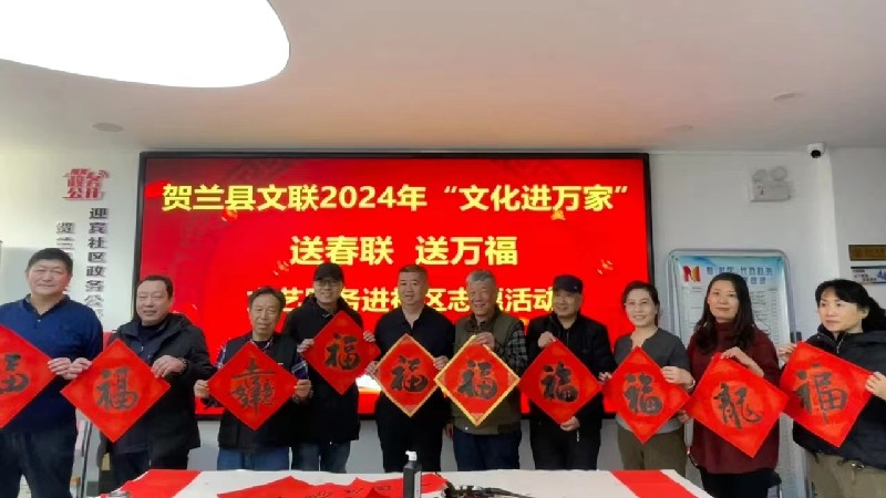 笔墨迎新春,春联送福至。为进一步巩固“强基工程”,助力基层精神文明建设,更好地传承中华优秀传统文化,营造喜庆祥和的文化氛围,在2024年春节来临之际,贺兰县文联组织贺兰县书法家协会、贺兰县老年书画协会的书法家们走进贺兰县迎宾社区开展“文化进万家”送春联送万福文艺志愿服务活动。