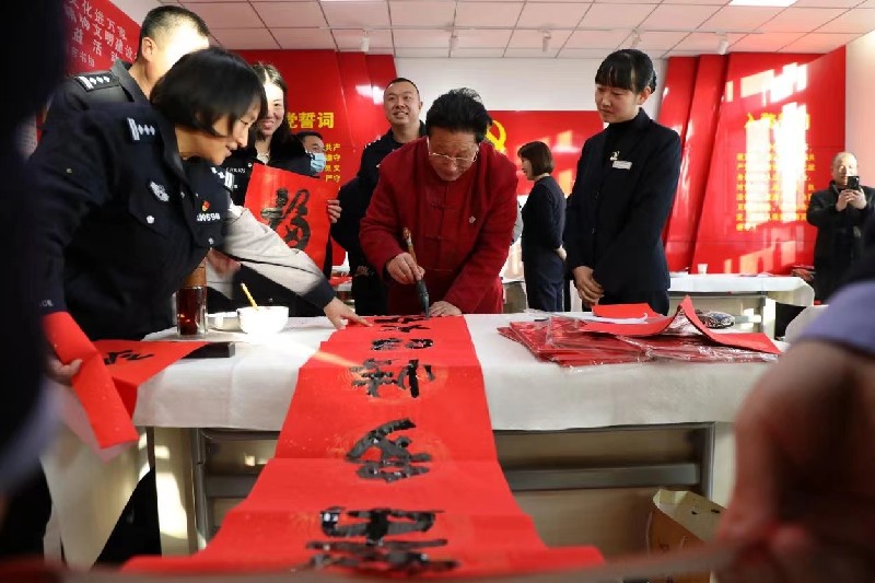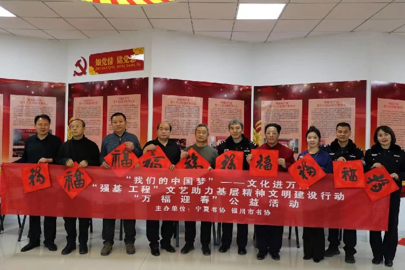 为深入实施中国文联“我们的中国梦——文化进万家”“强基工程”“文艺进万家 健康你我他”等文艺志愿服务项目要求,在甲辰龙年春节来临之际,银川市文联、银川市书法家协会组织50余位书法家,先后走进银川文化城、银川市公安局、银川监狱、银川市行政中心为群众、人民警察、机关干部现场书写赠送春联、福字3000余幅,弘扬中华书法艺术,挖掘中国传统节日——春节的节日文化内涵,营造春节浓厚节日氛围,满足群众的节日精神文化需求。