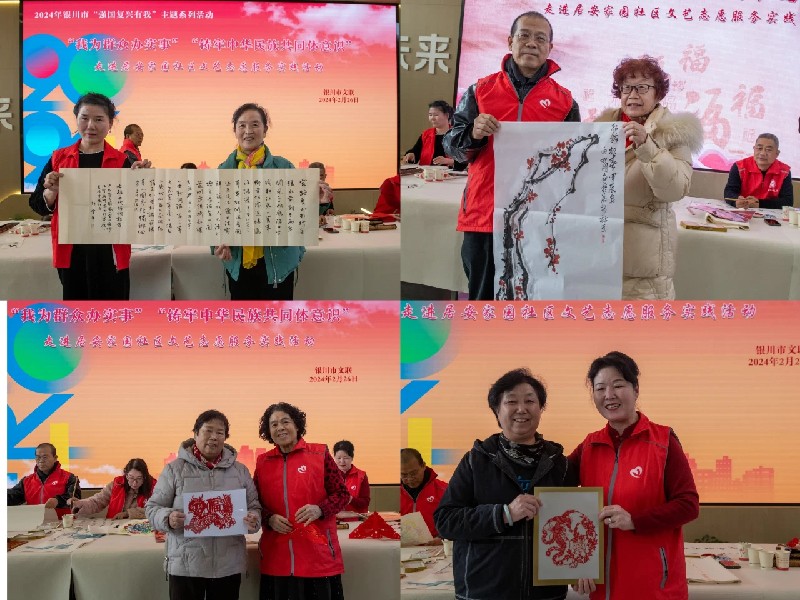 此次活动,也是银川市文联认真贯彻落实中国文联“文艺进万家 健康你我他”文艺志愿服务项目要求,扎实开展“我为群众办实事”活动,以“铸牢中华民族共同体意识”为主题,现场为群众创作书画剪纸作品。
