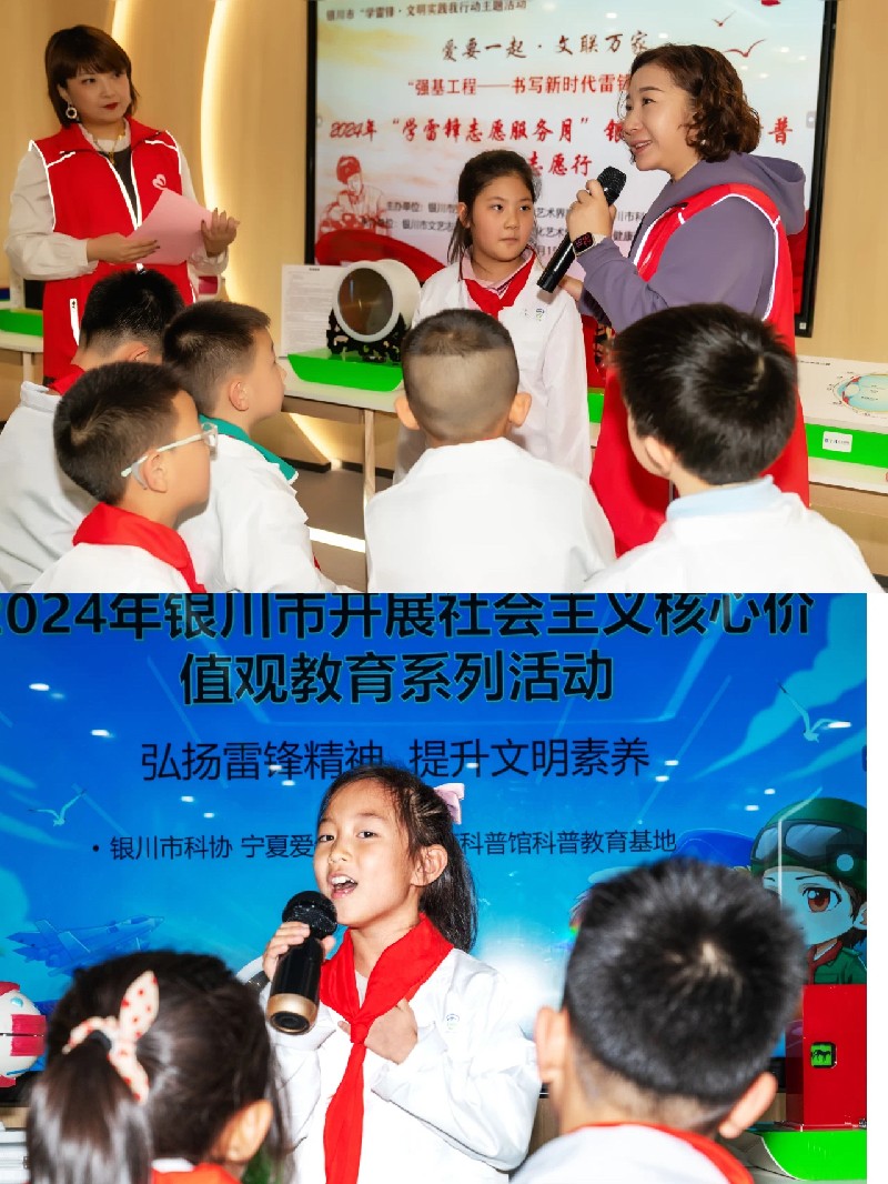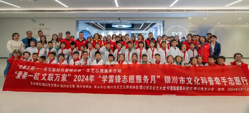 为扎实落实中国文联“强基工程”“书写新时代雷锋故事”文艺志愿服务项目要求,3月15日,正值2024年学雷锋月期间,由银川市文明办、银川市文联、银川市科协主办,银川市文艺志愿者协会、银川市文化艺术馆、银川市兴庆区大团结社区、银川博文小学、宁夏眼健康科普馆联合承办的银川市“学雷锋·文明实践我行动主题活动”2024年“学雷锋志愿服务月”书写新时代雷锋故事“爱要一起 文联万家”银川市文化科普牵手志愿行活动在宁夏眼健康科普馆举行。