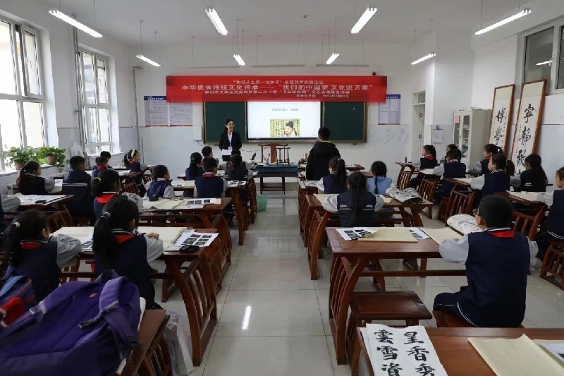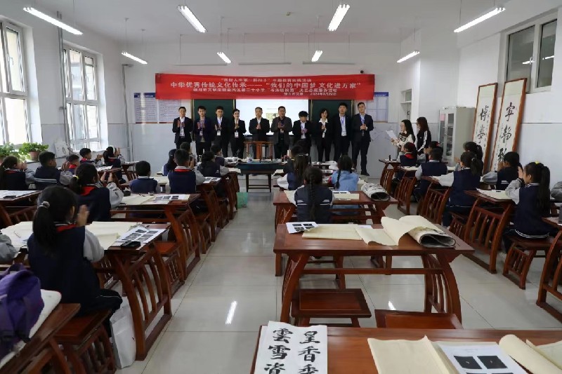 为进一步加强未成年人思想道德建设,切实在青少年中开展好中华优秀传统文化传承工作,引导广大青少年在学习和传承好中华优秀传统文化的过程中,树立正确的世界观、人生观、价值观,培育家国情怀,增强文化自信,认真“扣好人生第一粒扣子”,3月22日,由银川市文联主办,银川市书协、金凤区文联、金凤区书协承办的“我们的中国梦 文化进万家——书法进校园”文艺志愿服务活动在金凤区第二十小学举办。