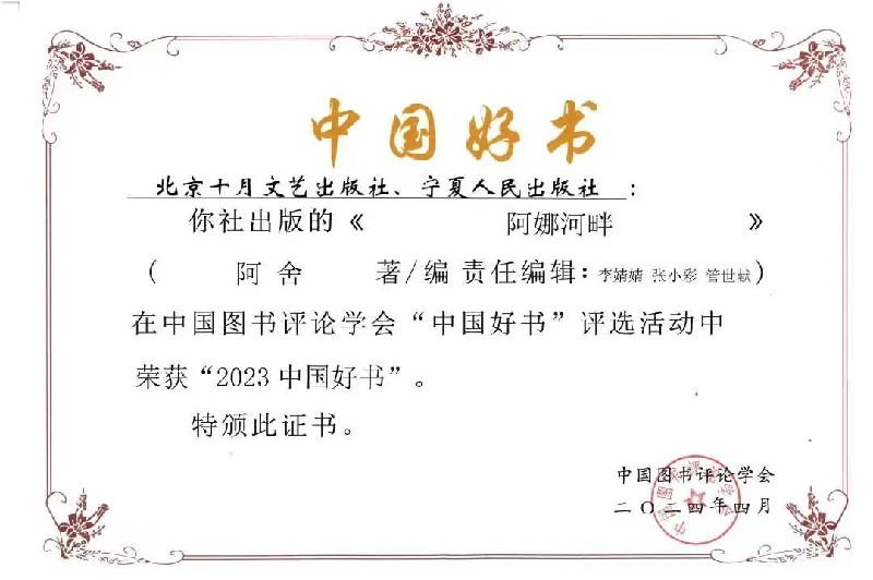继《诗在远方:“闽宁经验”纪事》《出路》获评“中国好书”奖之后,《阿娜河畔》又获“中国好书”奖。至此,黄河出版传媒集团连续三年获此殊荣,这也是对集团聚焦出版主业、强化主题出版,打造时代精品、为人民出好书的再次肯定和鼓舞。