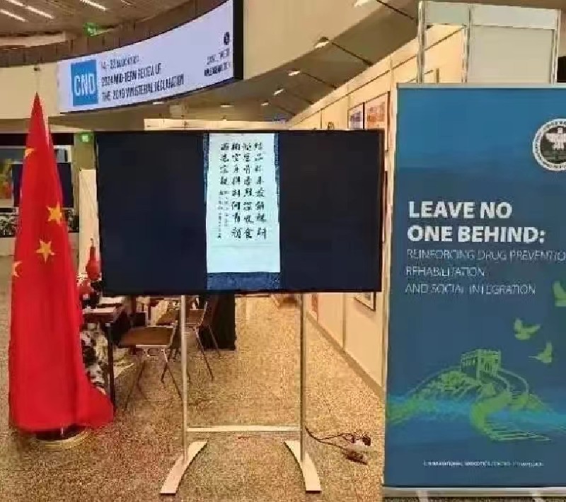 会议期间,同时举办了联合国麻委会高级别会议专题展览。由银川书画院院长范彦奎创作的一幅禁毒书法作品《健康人生 远离毒品》,被国家禁毒办选中并在本次国际会展展陈。此次,与他同获此殊荣的宁夏书法家仅有两位。另一位是宁夏书法家魏沁,其作品《禁毒赋》也在此次展览中展出。