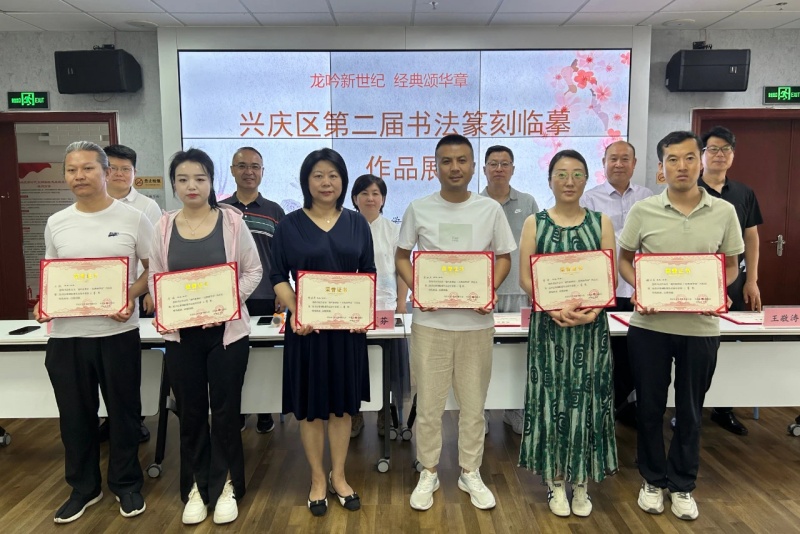 2024年6月14日,兴庆区第二届书法篆刻临摹展在兴庆区新时代文明实践中心四楼综合展厅开幕。此次展览共收到书法篆刻作品180余件,作品涵盖了各书体门类以及篆刻,取法上至商周,下迄清末,钟鼎、碑版、刻石、法帖均有涉猎。经过严格评审,59位作者的近百件临创作品参加了展览。开幕式为获得一、二、三等奖及优秀奖的16位作者颁发了证书及奖金。