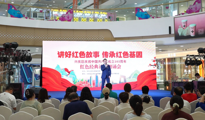 为热烈庆祝中国共产党成立103周年,引导广大党员干部群众厚植爱党、爱国情感,听党话、感党恩、跟党走,6月30日,兴庆区委宣传部、兴庆区文联、兴庆区朗协共同举办“讲好红色故事 传承红色基因”庆祝中国共产党成立103周年红色经典诗歌朗诵会,向伟大的党献上诚挚的祝福。