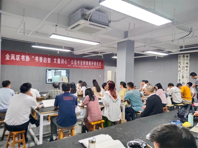 金凤区文联办公室主任马瑞、金凤区书协主席黄镇、金凤区书协主席团全体成员以及四十余名书法爱好者参加了开班仪式。开班仪式由金凤区书协副主席王彦骏主持。