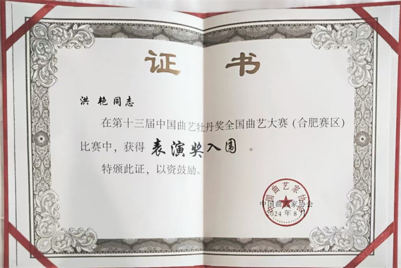 高旷云天收夏色,牡丹花开庐州城。2024年8月22日,由中国文联、中国曲协、安徽省文旅厅、安徽省文联、合肥市政府主办的第十三届中国曲艺牡丹奖全国曲艺大赛(合肥赛区)各奖项提名名单公布。银川艺术剧院青年演员洪艳原创评书作品《邓小平当年在宁夏》获表演入围奖。