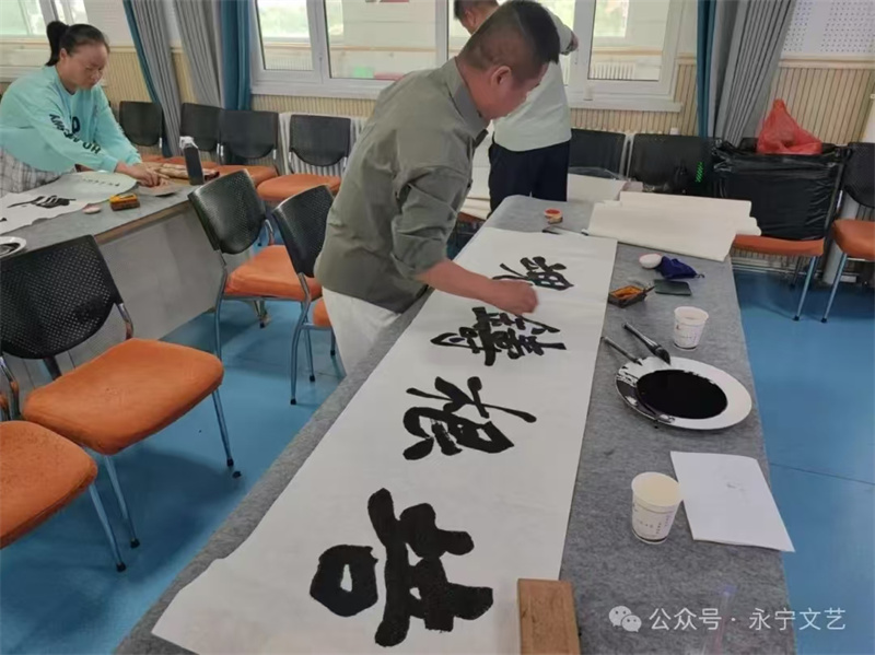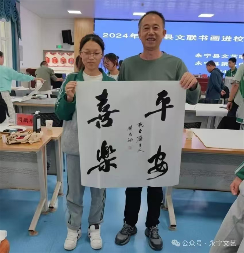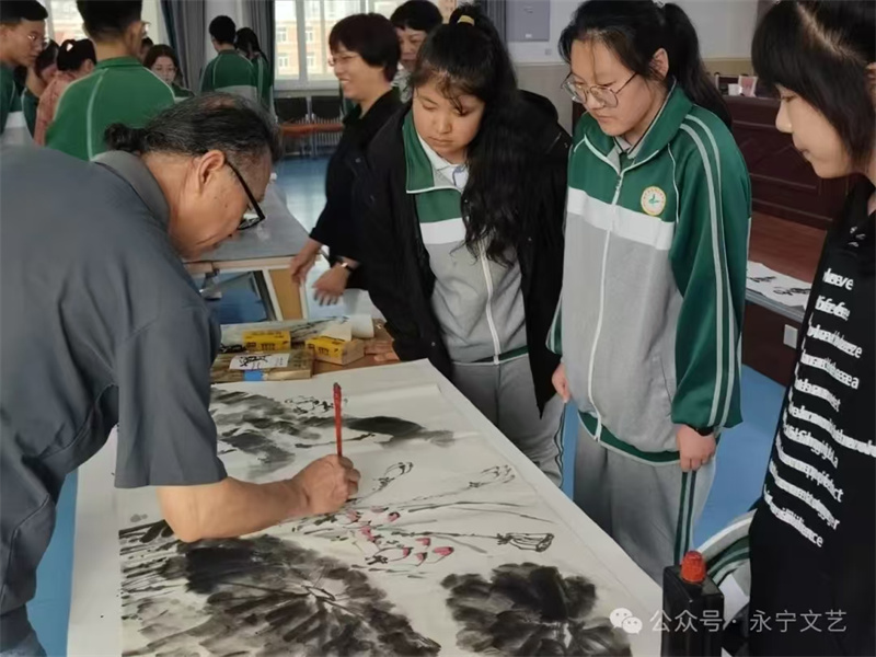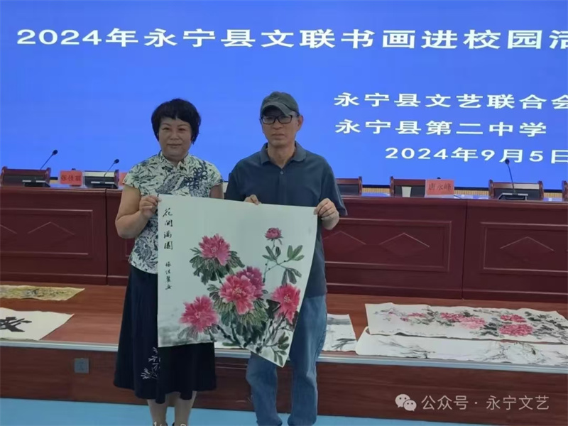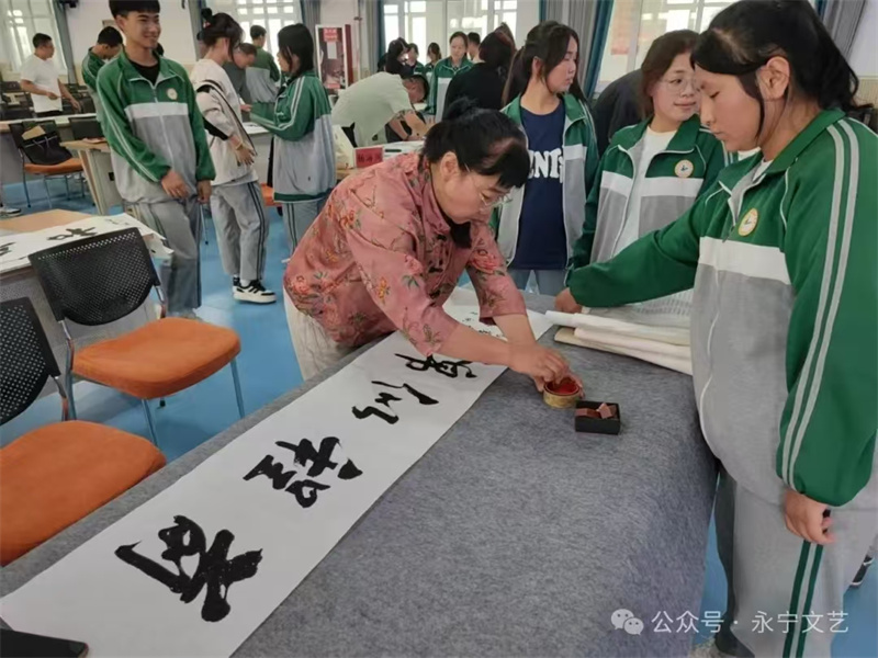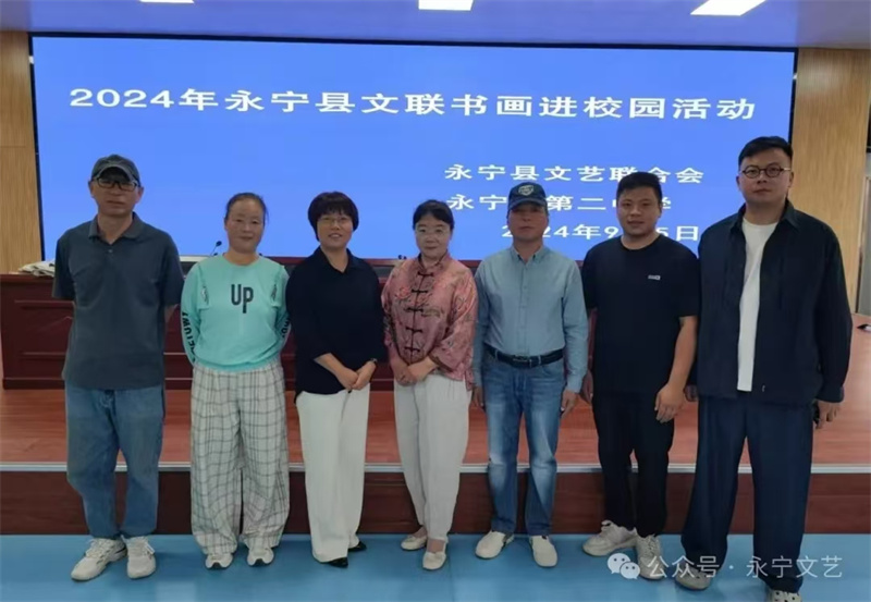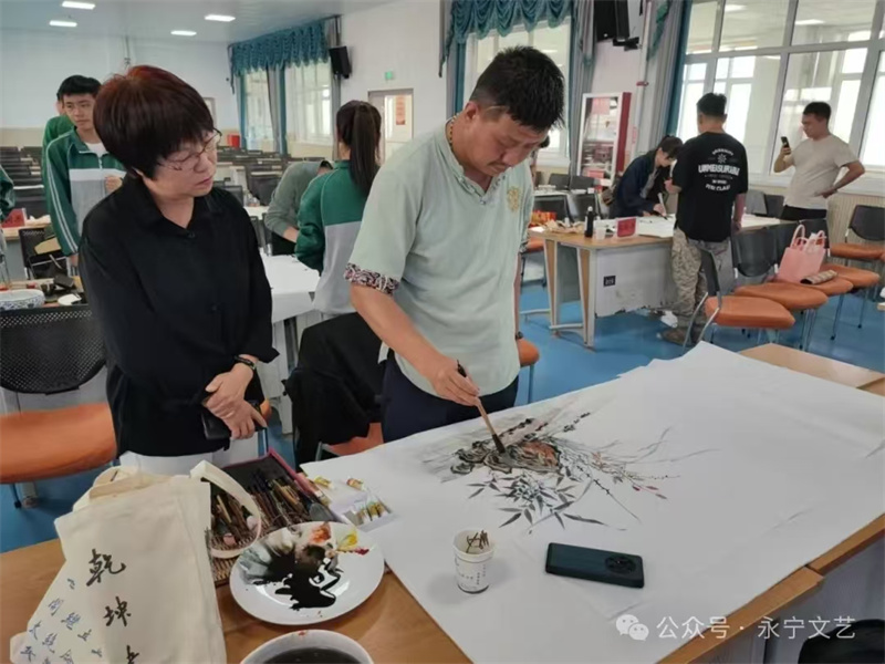 为深入学习贯彻党的二十届三中全会、习近平总书记考察宁夏重要讲话精神,建设社会主义文化强国,2024年9月5日下午,永宁县文联联合民进宁夏开明画院银川分院的书画家,在永宁县第二中学开展了“书画进校园”活动,与同学们一起感受中华优秀传统文化的魅力。