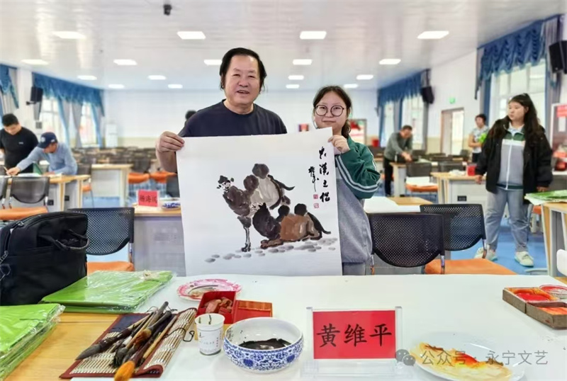 书画,是中华传统文化的瑰宝,承载着千年的历史与智慧,散发着独特的艺术魅力。活动现场,书画家们挥毫泼墨,为现场同学们带来了一场视觉与心灵的盛宴。同学们学习热情十分高涨,非常珍惜此次宝贵的学习机会,与现场的艺术家们积极交流,认真探讨,从书画中见仁见智见人生。此次“书画进校园”活动,为同学们提供了一次零距离接触书画家、亲近中华优秀传统文化的良机,增强了孩子们的民族自豪感和文化自信心,为青少年继承和发扬中华优秀传统文化,推动校园文化建设注入了新的活力。
