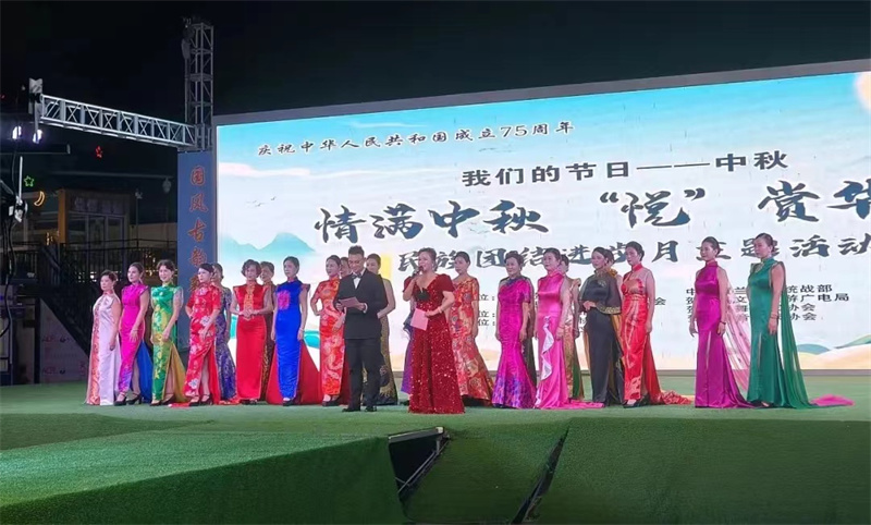“万里无云镜九州,最团圆夜是中秋”。中秋节是中国传统的节日之一,象征着团圆和丰收。为庆祝中华人民共和国成立75周年,坚持以铸牢中华民族共同体意识为主线,传承中华优秀传统文化。9月12日,“情满中秋 ‘悦’ 赏华服”民族团结进步月主题活动在贺兰县欣兰广场成功举办。本次活动共分为民族篇、黄河篇、传承篇三个篇章,以民族服饰展示、舞蹈、歌曲等表现形式,带领观众进一步凝聚铸牢中华民族共同体意识的思想共识,近距离感受中华传统服饰的魅力,感悟中华民族传统文化的力量,带给观众一场视听盛宴。