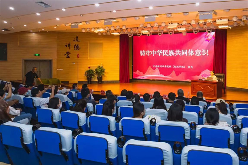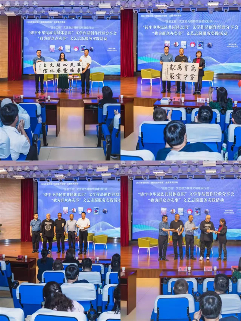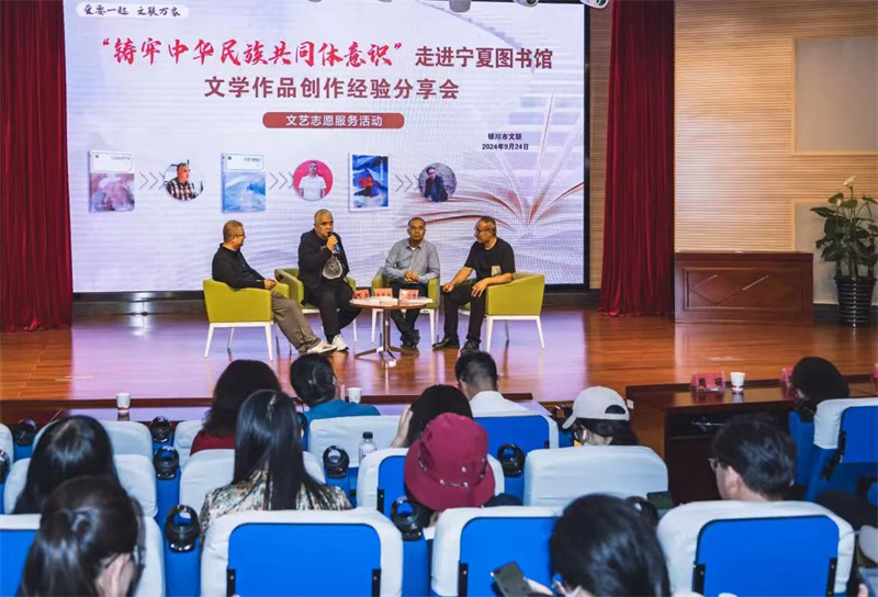 拓宽守正创新的“视野点”。邀请银川市委党校行政学法学教研部教师张艺同志作“铸牢中华民族共同体意识”理论微宣讲,她结合各民族交往交流交融的生动实践,通过举实例、讲故事、谈经验等方式,引导广大干部和文艺工作者把带头铸牢中华民族共同体意识融入日常、干在平常。在“铸牢中华民族共同体意识”文学作品创作经验交流分享会中,宁夏日报社记者、著名作家阿尔,中国作家协会会员、银川市作协副主席冶进海,银川市作协理事王兴国依次分别围绕诗集《上去高山望平川》、小说集《月光下的兔子》和长篇小说《王村和他的兄弟》分享创作经验,与现场青年作家及群众互动,并将个人专著赠予现场观众、图书馆和党校,在和谐交流、互相进步的良好氛围中奉献文学精品力作。活动最后,银川市文联向宁夏图书馆和银川市委党校赠送了“滋养民族心灵 培养文化自信”“为党育才 为党献策”两幅书法作品,《黄河文学》杂志、《黄河书系》《宁夏家书古今》等图书100余册,通过有声和无声文化相互交融为民族团结进步注入了强大的文艺元素。
