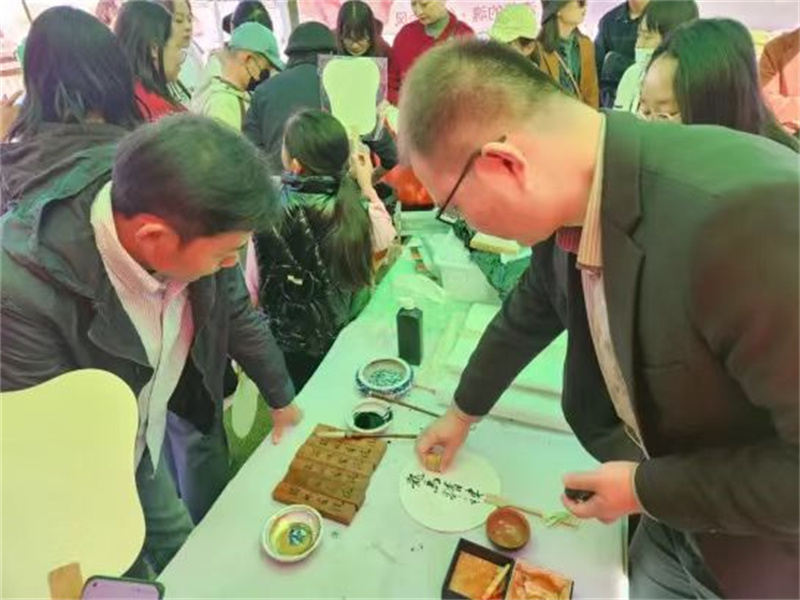 为增添展览的趣味性与参与度,此次展览还为群众增设了新鲜有趣的互动环节——漆扇与扎染体验课程。以漆为笔、以水为画,绘制出如云雾缥缈、如山川壮丽的图案;以布为纸、以绳线为笔,让一抹“民族蓝”绽放在各式织物上。群众在书画展的邂逅中收获属于自己的非遗礼物,享受艺术的乐趣。