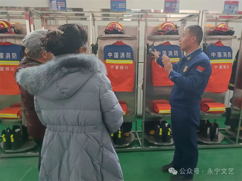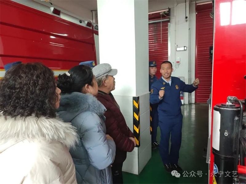 剪纸活动结束后,永宁县消防大队站长邀请参加活动的艺术家们参观消防救援车、消防救援器材室等,深入了解基层消防员训练日常。