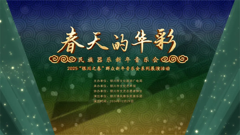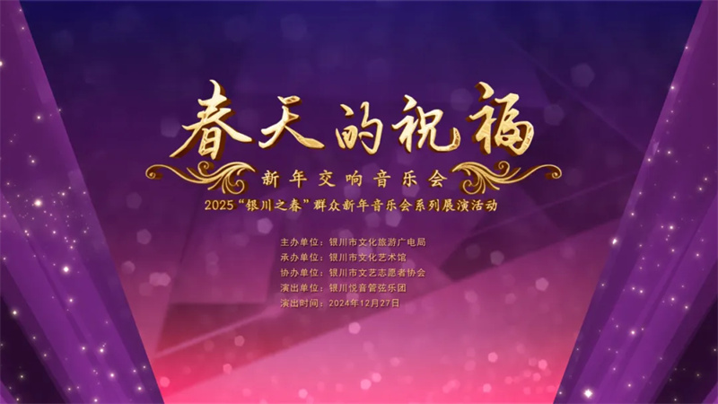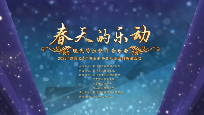 为喜迎2025元旦佳节的到来,充分展示银川市民间优秀乐团的艺术风采,由银川市文化旅游广电局主办、银川市文化艺术馆承办、银川市文艺志愿者协会协办的2025“银川之春”群众新年音乐会展演活动于12月27日拉开帷幕,分别来自银川市的三支群众性优秀乐团为银川市民送上三场不同风格的新年音乐会,用音乐奏响春天最美的乐章!