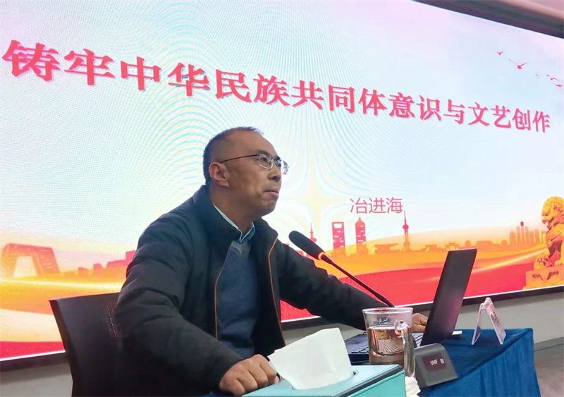 2月27日下午,北方民族大学文学与新闻传播学院副院长、副教授冶进海作了题为《铸牢中华民族共同体意识与文艺创作》的专题讲座。他从中华民族共同体的概念出发,深入阐述了新时代铸牢中华民族共同体意识的行动指南和重要意义。冶进海结合传承中华优秀传统文化与铸牢中华民族共同体意识的关系,以及如何用数字化文艺创作来铸牢中华民族共同体意识等方面,论述了铸牢中华民族共同体意识与文艺创作的关系。他强调,文艺工作者要深刻认识铸牢中华民族共同体意识的重要性和紧迫性,积极投身到铸牢中华民族共同体意识的伟大实践中去,创作出更多反映中华民族团结进步、共同繁荣发展的优秀文艺作品。