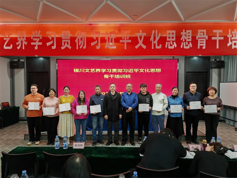 随后,现场还为10名学员代表颁发了结业证书。银川市文联党组成员、副主席李德超、田得雨出席交流研讨与结业仪式。李德超副主席在结业仪式上充分肯定了学员们的学习精神和学习成效。他指出,此次培训班取得了圆满成功,达到了预期目的。他要求全体学员要以此次培训为契机,不断巩固学习成果,切实把学习成果转化为推动文艺工作的强大动力。他强调,文艺工作者要始终坚持正确的政治方向、舆论导向和价值取向,不断提升自身的政治理论素养和文艺创作能力,为推动银川文艺事业繁荣发展贡献智慧和力量。此次培训班的成功举办,使习近平文化思想的深邃要义在银川文艺人才队伍中得到了更好地传播,必将对全市广大文艺工作者关注时代,书写时代,不断奉献文艺精品力作,更好地满足人民群众的精神文化审美需求,推动银川文艺事业高质量发展发挥出有力地推动作用。
