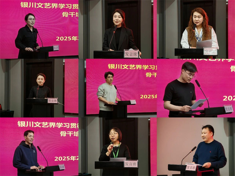 在为期三天的培训中,学员们不仅聆听了五位专家的精彩讲座,还积极进行了交流研讨和心得分享。2月28日下午,9名县(市)区文联、文艺两新、行业协会代表现场分享了培训心得。他们纷纷表示,此次培训让他们受益匪浅,不仅加深了对习近平文化思想的理解和认识,还提升了自身的政治理论素养和文艺创作能力。他们表示将以此次培训为契机,不断注重提高政治理论素养,持续深入生活、扎根人民,紧紧围绕银川市委、市政府中心工作,充分发挥文艺工作者应有的作用,不断推出优秀的文艺作品,为银川“双示范市”建设贡献文艺力量。