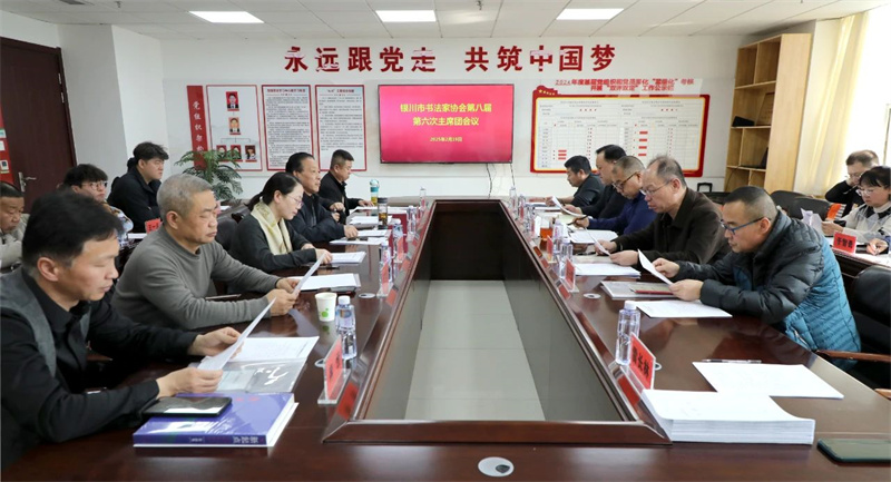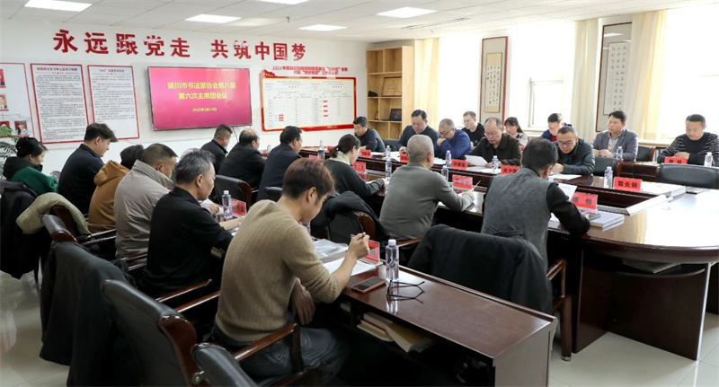 2025年2月19日下午,银川市书法家协会八届六次主席团会议在银川市文联四楼会议室召开。银川市文联党组成员、副主席田得雨,银川市文联协会工作部部长郭国军,银川市书法家协会主席团成员21人参加了会议,会议由银川市书法家协会副主席兼秘书长雷长林主持。