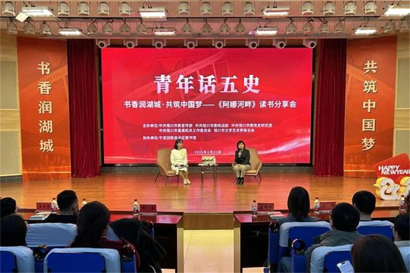为深入推动党史、新中国史、改革开放史、社会主义发展史、中华民族发展史的宣传教育,提升青年干部政治素养和理论素养,铸牢中华民族共同体意识,由银川市委宣传部、市委统战部、市委党史研究室、市直机关工委、市文联主办,宁夏图书馆协办的银川“青年话五史”第二期——“书香润湖城•共筑中国梦”读书分享会于2月21日在宁夏图书馆举行。本次活动邀请作家阿舍深度聚焦其创作的长篇小说《阿娜河畔》进行分享交流。这部作品以细腻的笔法,歌颂了各民族同心协力、共同建设边疆的伟大历程,广大青年在深度交流中进一步深化对中华民族共同体的政治认同、思想认同、理论认同、情感认同。