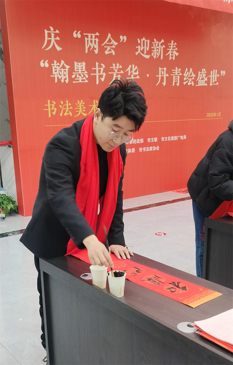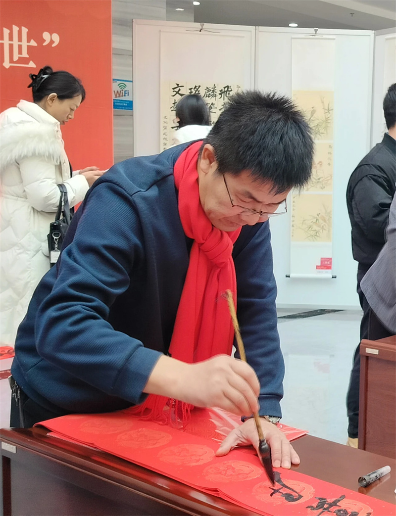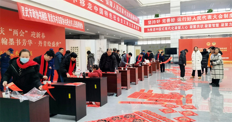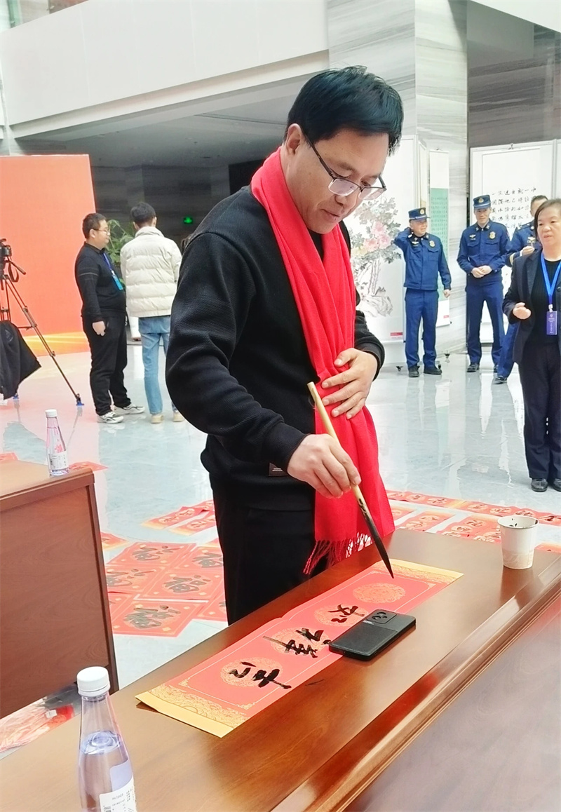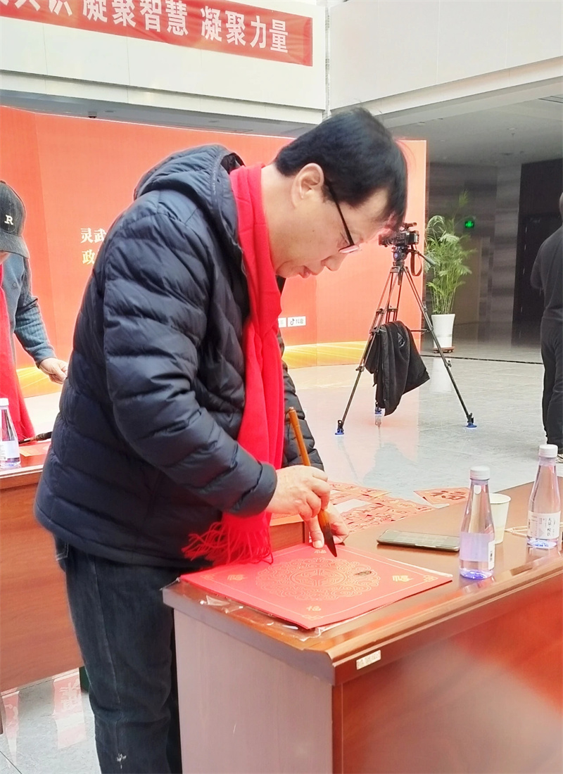 祥龙贺瑞辞旧岁,金蛇含珠迎新春。2025年1月7日,灵武市政协书画院、灵武市书法家协会为了增添灵武市两会的喜庆氛围,弘扬中华优秀传统文化,特组织书法家走进会议现场写春联,提前为两会委员们送上了新春的美好祝福。