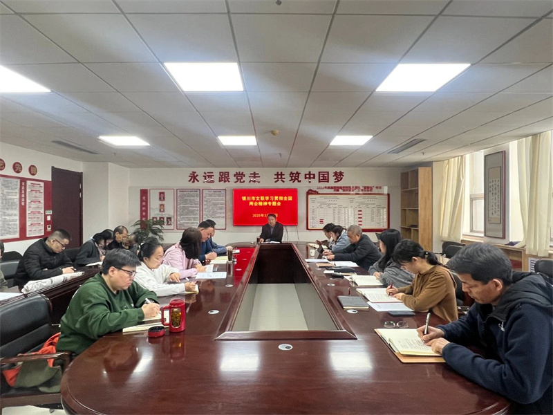 2025年3月17日,银川市文联召开专题会议,传达学习习近平总书记在全国两会期间的重要讲话精神和全国两会精神,研究部署贯彻落实措施。银川市文联党组书记、主席马文阳主持会议并讲话。