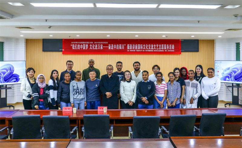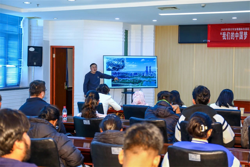 为加强国际传播能力建设,讲好中国故事,用文艺的方式,让在银川学习生活的留学生们,更为深入地感受日新月异变化中银川的无穷魅力,增进他们与中国艺术家的交流互动,加深热爱银川、宣传银川的美好感情,2025年3月25日下午,由银川市文学艺术界联合会、宁夏医科大学主办,银川市摄影家协会、银川市文艺志愿者协会协办的“我们的中国梦 文化进万家——奋进中的银川”摄影讲座暨国际文化交流文艺志愿服务活动在宁夏医科大学成功举办。