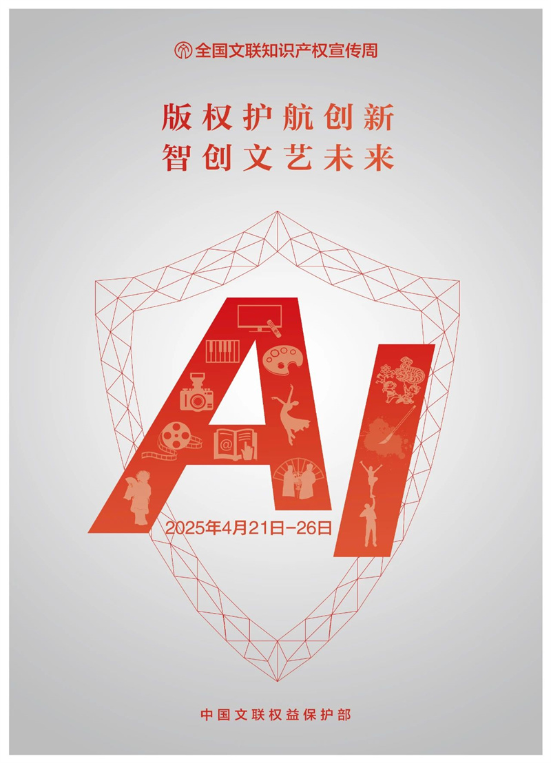 在第25个世界知识产权日来临之际,一年一度的“全国文联知识产权宣传周”活动将于2025年4月21日-26日再次举办。今年活动的主题是“版权护航创新,智创文艺未来”,现正式发布宣传周活动海报。在“全国文联知识产权宣传周”活动期间,中国文联将与浙江省文联、中国美术学院、杭州市文联等单位,在杭州共同举办“全国文联知识产权宣传周”启动仪式、研讨会等相关丰富多彩的系列活动,敬请期待。