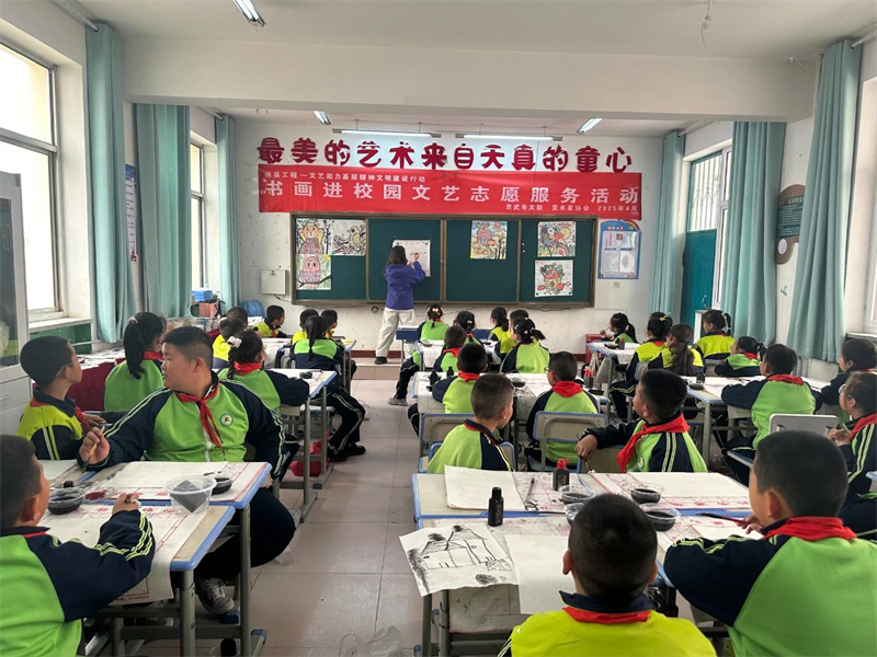 为推动中华优秀传统文化薪火相传,丰富校园文化生活,2025年4月11日,灵武市文联联合灵武市美术家协会在灵武市农场小学开展了书画进校园文艺志愿服务活动。