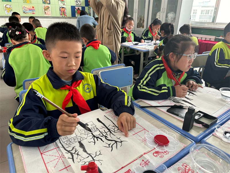 活动现场气氛活跃,学生们对栩栩如生的国画呈现出浓厚兴趣,感受着中国画的魅力。灵武市美术家协会的老师们分别为同学们讲解国画创作知识,指导他们如何正确使用毛笔和颜料,创作出具有传统文化魅力的国画。学生们仔细聆听,拿起毛笔沉浸式体验国画创作,并进行现场国画创作展示,每幅作品都充分展示了国画艺术的独特魅力以及传统文化的博大精深,散发出浓浓的艺术创作氛围。