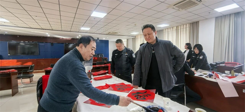 本次活动共书写春联及“福”字300余副,以笔墨传情送福,向坚守一线的民警道一声辛苦,送上新春美好祝福。