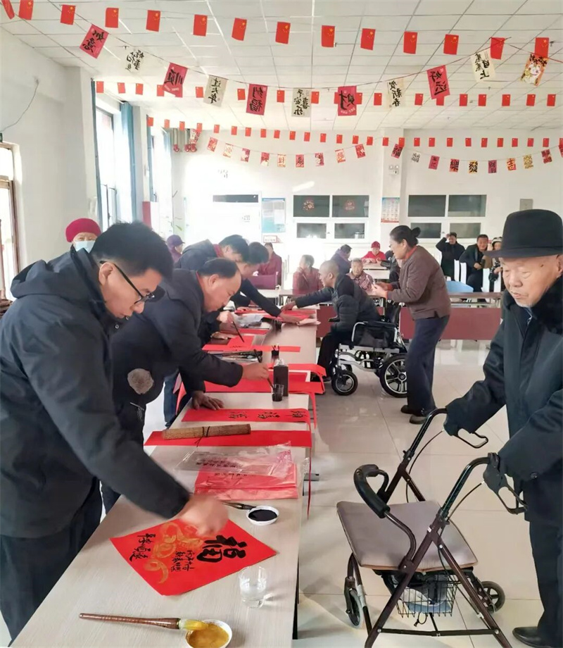 2026年2月3日,温暖首达西夏区新天地长者养护中心。活动现场,红纸铺展,墨香飘溢。书法家们凝神聚气,挥毫泼墨,将美好的祈愿诉诸笔端。“天增岁月人增寿,春满乾坤福满门”“银发逢春笑,翰墨伴岁长”等一副副寓意吉祥的春联和饱满的“福”字相继诞生,既有传统年节的韵味,又饱含对老年群体的深情关切。老人们围坐一旁,欣赏品评,笑容满面,纷纷挑选自己喜欢的联句请书法家现场书写。一位老人接过墨迹未干的春联,感慨地说:“手写的春联比印刷的更有温度,这一笔一画里都是心意,让我们心里头暖洋洋的!”据悉,本次活动累计为老人们赠送春联200余副、“福”字200余张。