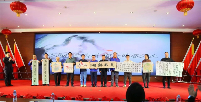 为助力企业文化建设与发展,贺兰县美术家协会、贺兰县书法家协会的艺术家们还向企业捐赠了多幅书画作品。同时,活动现场同步开展了“迎春送福 写春联”文化惠民活动,书画家们现场挥毫泼墨,书写了180余副红彤彤的春联和“福”字,送到了企业员工手中。