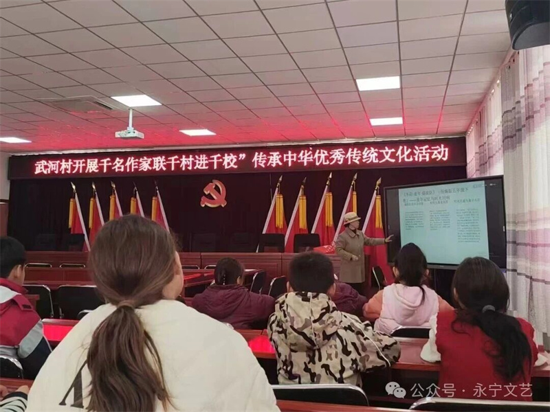 2026年2月25日至3月13日,宁夏银川永宁县“千名作家联千村(社区)进千校”传承中华优秀传统文化行动(简称“三千行动”)持续深入开展,李金梅、黄炳章、马宏斌、于晨光、李晓哲、纪晓文六位作家先后走进闽宁镇武河村、李俊镇雷台中心村、杨和镇杨和村、三沙源社区、闽宁第二中学、望洪镇靖益中心村、东环社区等地,累计开展专题讲座7场,惠及群众800余人次,以文学之力滋养乡土,以文化之光照亮心田。